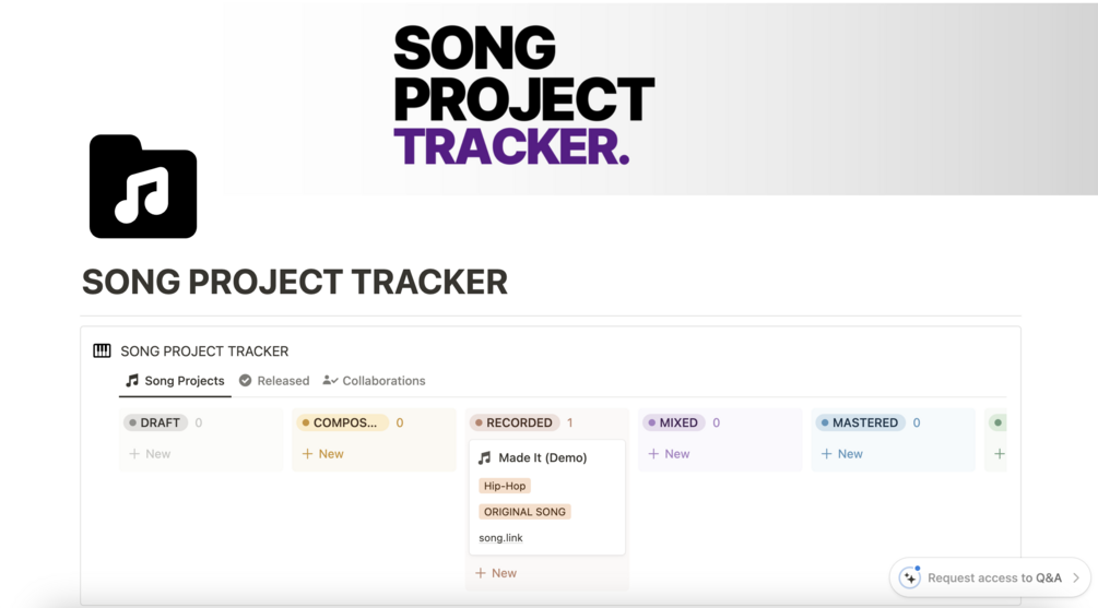 This Notion Song Tracker Template is the only tool you need to manage your music projects.